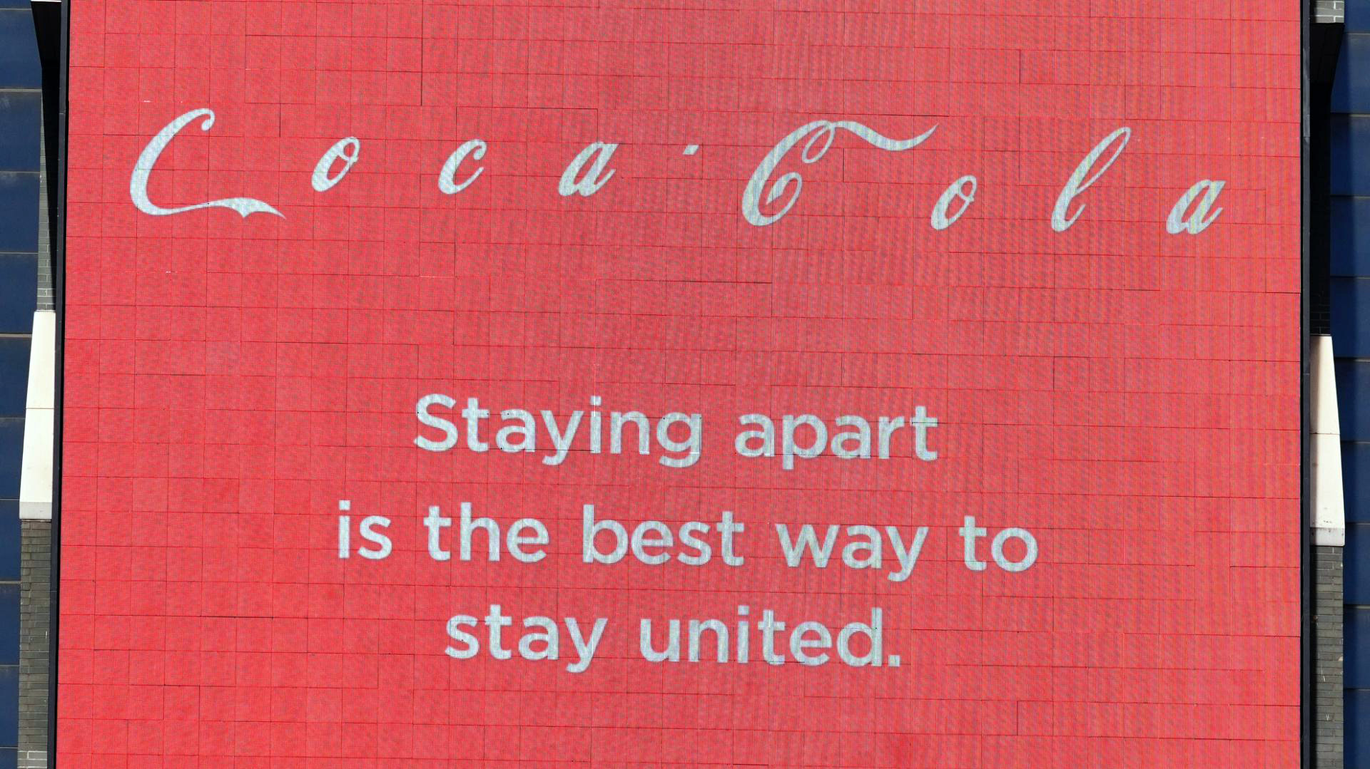 چندی پیش بنر تبلیغاتی از «کوکا کولا» در میدان «تایم» واقع در «نیویوک» نصب شده بود که حروف لوگوی «کوکا کولا» را با فاصله از یکدیگر به تصویر میکشید و به همراه جملهای از مردم خواسته بود تا فاصله خود با یکدیگر را رعایت کنند.