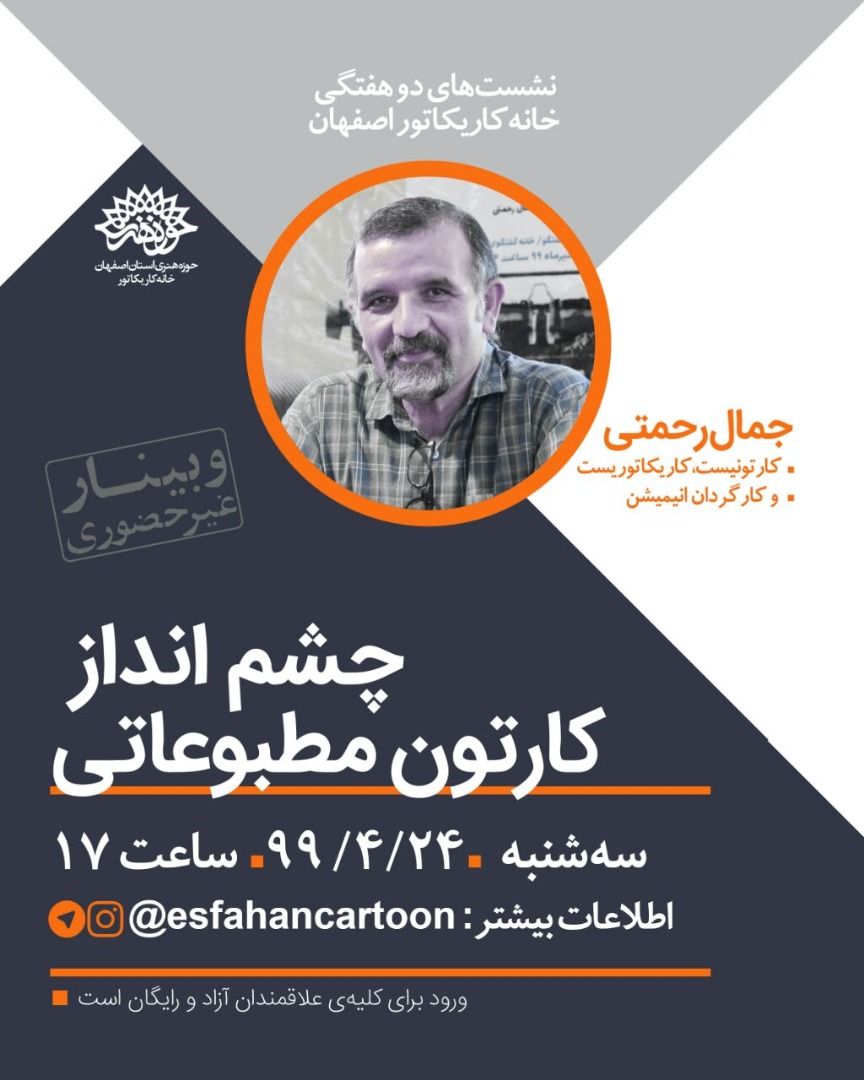 خانه کاریکاتور حوزه هنری استان اصفهان نشستهای تخصصی دو هفته یکبار خود را این بار به صورت مجازی و وبینار برگزار میکند.