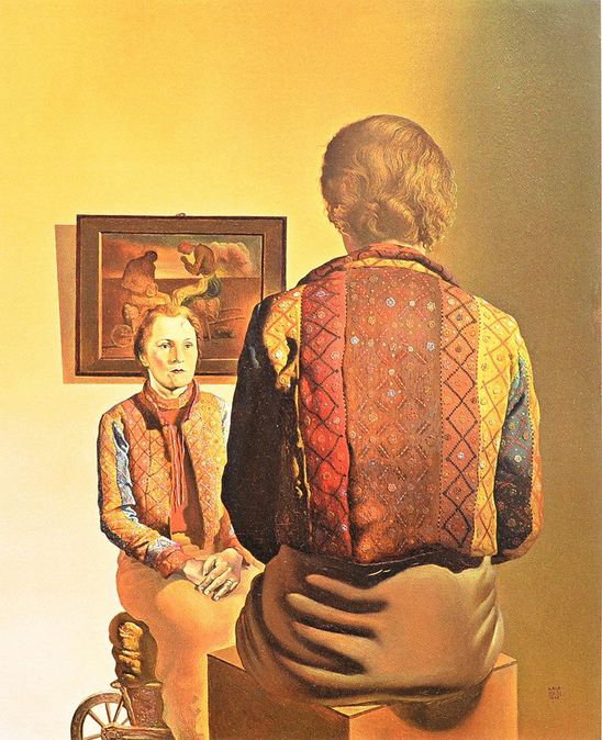 این از جمله تابلوهای متعدد "سالوادوردالی" در طول دهه 1930 است. این نقاشی بر اساس تابلویی از "فرانسوا میله" که ذهن "دالی" را به خود مشغول کرده بود به وجود آمد. نسخه ای از تابلوی میله، با تغییراتی چند، پشت سر گالا (همسر دالی) دیده می شود. گالا رو به روی پیکر دیگری در پیش زمینه، که از پشت سر تصویر شده و احتمالا خودِ اوست، نشسته است. دو تصویر گالا در مقابل هم تا اندازه ای شکل و حالت دو پیکر تابلوی "میله" را تداعی می کنند.