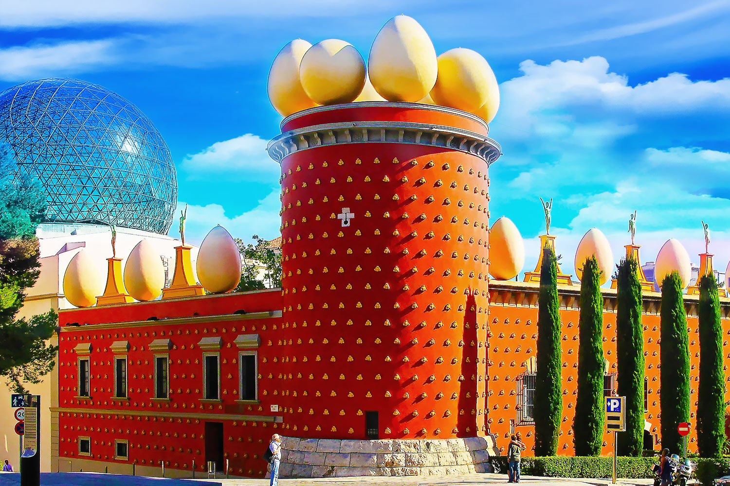 نمای بیرونی ساختمان موزه به رنگ قرمز روشن است و تخممرغهای بزرگ روی دیوار نگاهها را به سمت خود جلب میکند؛ طرحی که به خوبی تداعی کننده روحیه عجیب سالوادور دالی است