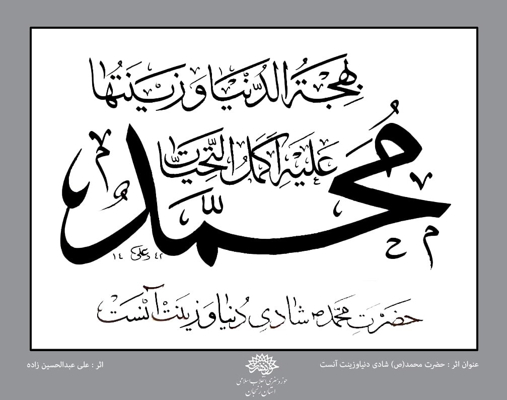 این هنرمند با اشاره به اینکه تمامی هنرمندان در رشتههای مختلف به ویژه خوشنویسی باید چهره نورانی پیامبر و سنت ایشان را به تصویر بکشند، افزود: پیامبر ما بسیار مظلوم است و از همان زمان پیامبری ایشان، بودند کسانی که ایشان را تخریب میکردند، چنانچه در حال حاضر نیز دشمنان به شیوههای مختلف از هیچ اقدامی در جهت توهین به ساحت مقدس ایشان غافل نمیشوند.