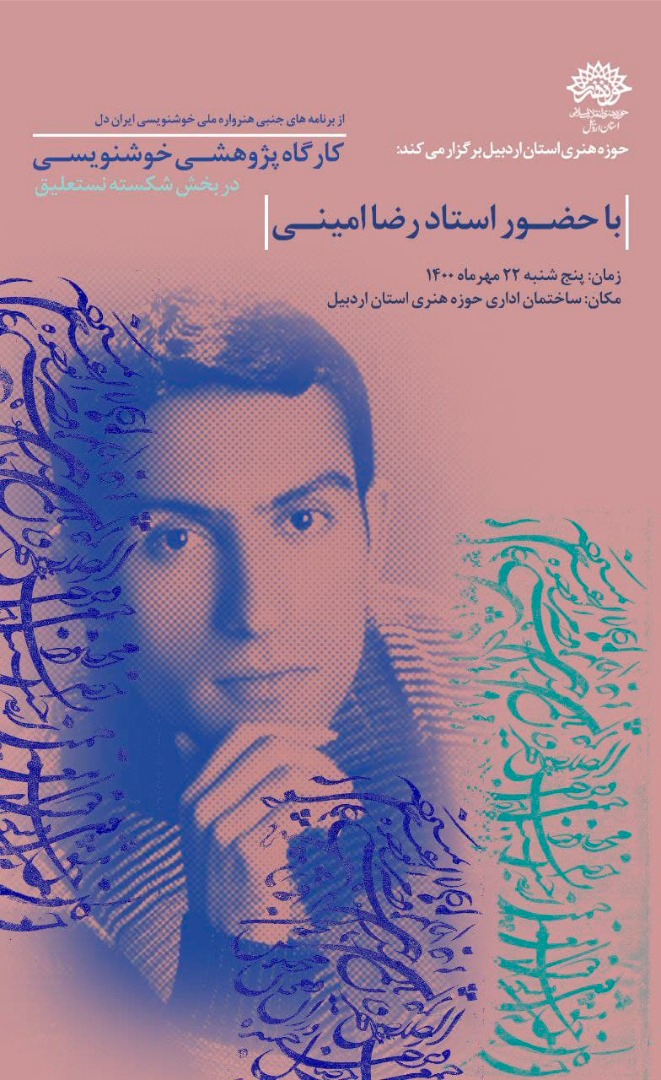 گفتنی است ورکشاپ پژوهشی خوشنویسی با رعایت فاصلهگذاری اجتماعی و پروتکلهای بهداشتی و به صورت محدود با حضور 27 نفر از هنرمندان منتخب خوشنویسی استان و در چند بخش برگزار شد. در پایان این کارگاه با همراهی استاد رضا امینی، هنرمندان اردبیلی به تولید اثر، نقد و بررسی و تحلیل محتوا پرداختند.