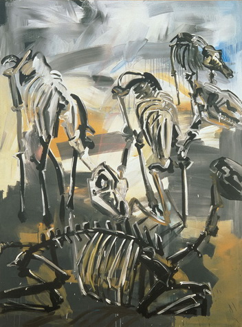 اوهلن تحت تأثیر دیگر نقاشان آلمانی مانند گرگ بازلیتز، سیگمر پلک و گرهارد ریشتر، بر فرآیند نقاشی خود تمرکز می کند. در طول دهه 1980، ترکیب عناصر انتزاعی و مجسمهای نقاشی را در آثار او به عنوان بخشی از واکنش به زیبایی شناسی غالب نئو-بیانگرای آن زمان شروع کرد. در سالهای بعد، او در پارامترهای خود اعمال، اغلب پوچ و مبهم کار میکرد. او تنها نقاشهای خاکستری خود را برای نقاشیهای خاکستری خود استفاده کرد و خود را به قرمز، زرد و آبی محدود کرد تا مجموعه دیگری از نقاشیهای «بد» که شامل نقاشی او در سال 1986 پرچم آدولف هیتلر بود. در نقاشیهای او اواخر دهه 1990، هر قطعه شامل اسمیر و خطوط رنگ Oehlen است و بر روی تصاویر کلاژ شده که به نوع چاپگرهای جوهر افشان غول پیکر که برای ساخت تابلوهای تبلیغی استفاده می شوند، اسپری می شوند.