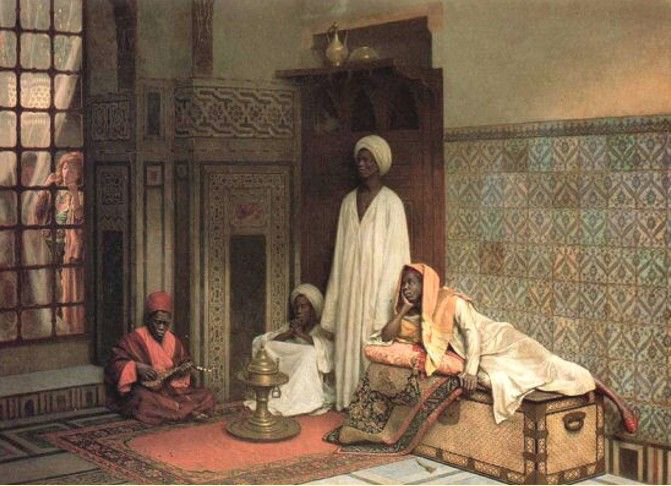 انگیزه اینگونه نقاشیها از چشماندازهای گوناگون زندگی مردم مشرق زمین، صرفا بهانهای بود برای دادن سیر و جریان آزاد به قوه تخیل نقاش. در میان این تابلوها، مضامینی از این دست یافت میشود: «زنان دربار که به خاطر یک رفتار اشتباه کشته میشوند»، «کنیزانی که بر اثر کار زیاد از حال میرفتند»، «بردگان زیبائی که مجبور بودند در میان جمع و در مقابل چشم خریداران - بعضا خشن و بیرحم - برهنه شوند»، ...