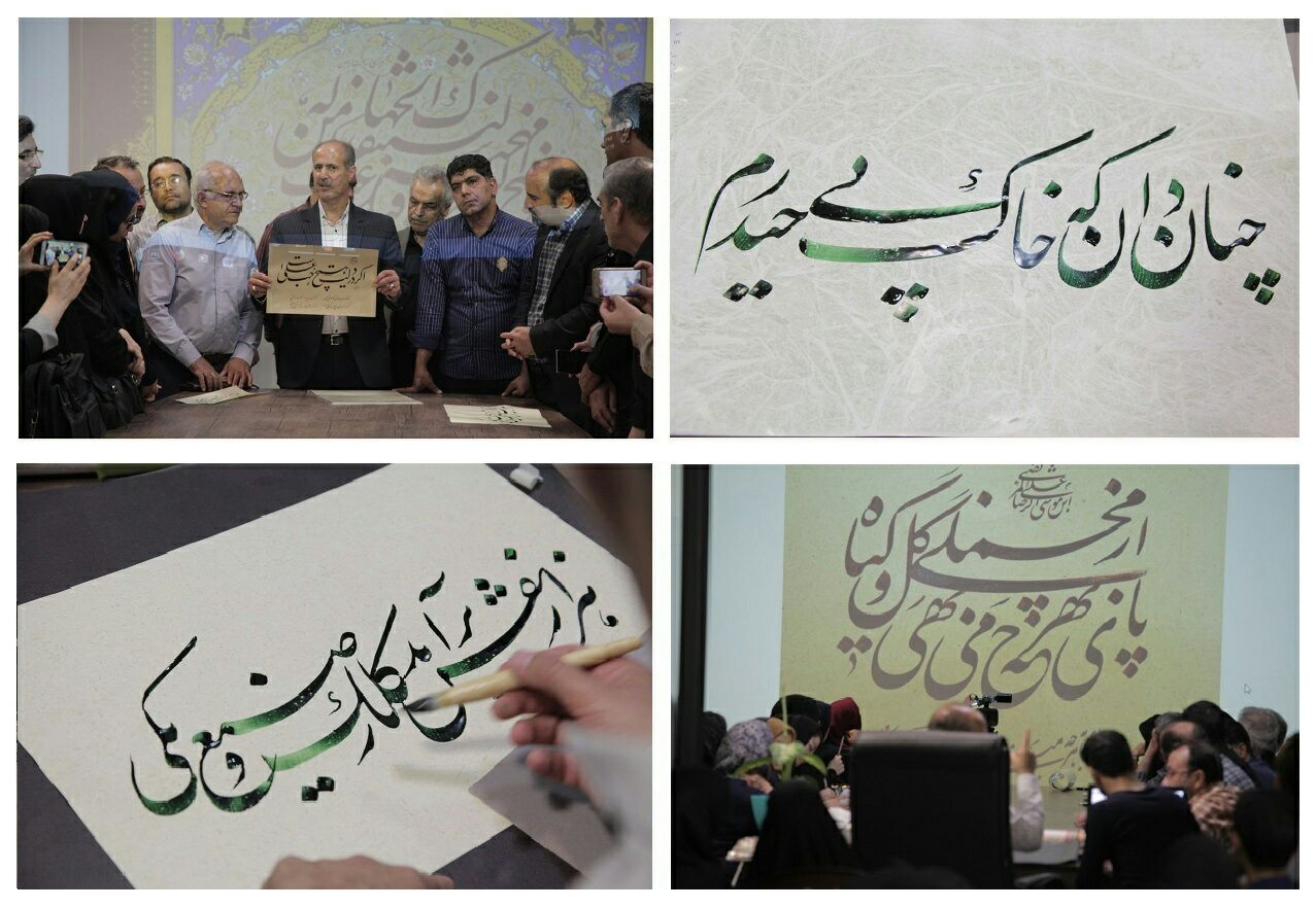 اجرای زنده خوشنویسی ابیاتی از شاهنامه فردوسی در وصف حضرت علی(ع) توسط استاد ساداتنژاد و اهدای دو اثر نفیس از آثار ایشان به حضار به همراه ثبت عکس یادگاری با هنرمندان و علاقهمندان به این هنر فاخر، حسن ختام نشست «هندسه روحانی» بود.