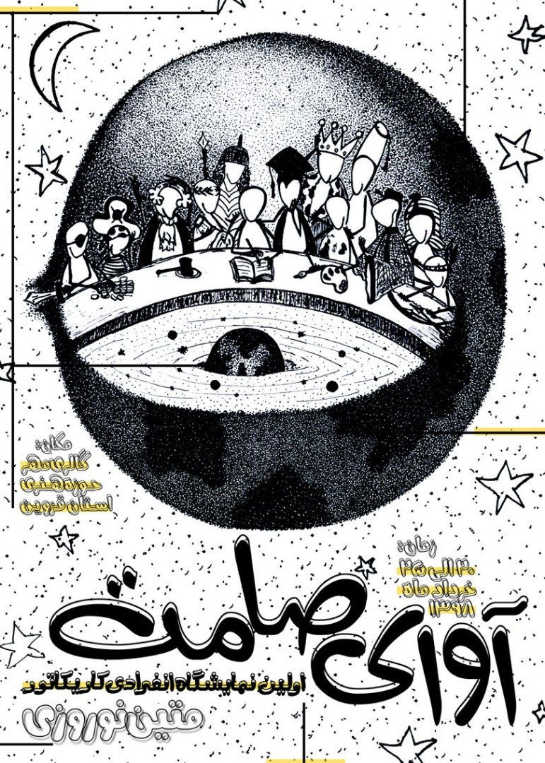 نمایشگاه «آوای صامت» از پانزدهم تا بیستم تیرماه جاری، همه روزه از ساعت: ۹ تا ۱۳ و ۱۷ تا ۲۰ جهت بازدید علاقهمندان در نگارخانه مهر این مرکز، واقع در بلوار مدرس جنوبی، روبروی بوستان ملت، جنب سینما بهمن پلاک۷۰ دایر می باشد.
