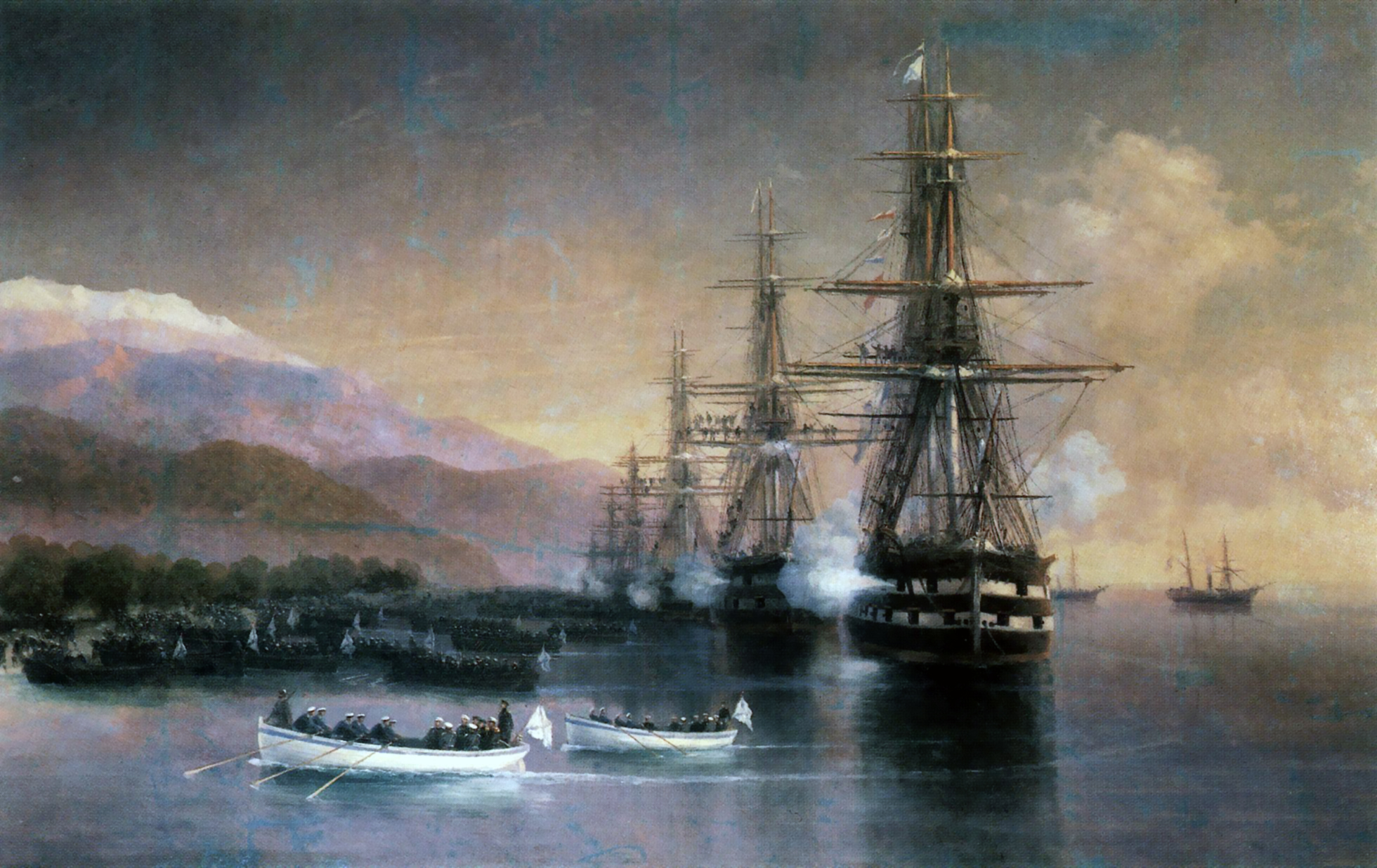 آیوازوفسکی نه تنها در نقاشیهایش بلکه در بخشی از خصومتهایی که در ساحل جزیره کریمه رخ میداد نیز با این قضیه درگیر شده بود. لذا نقاشی مشهور «ورود به خشکی در سوباشی» خلق شد. ساحل دریا در گودی سوباشی بازگو کننده آرامش هنوز بر هم نریخته سربازان است.