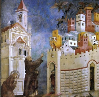 فرانسواسیز قدیس که با گرگ ها، پیام اوران مرگ، سخن می گوید. صفحه 102